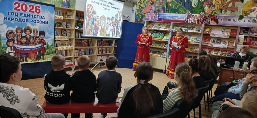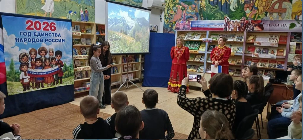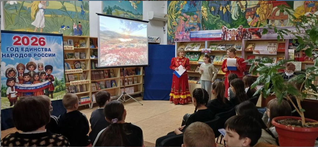 В 18 часов всех присутствующих пригласили в читальный зал на литературно – музыкальное путешествие «Широка страна моя родная». Участники отправились по регионам необъятной России. Они увидели бескрайние просторы крайнего севера и горные вершины Кавказа, красоту и неповторимость Поволжья и центральной России. О каждом регионе библиотекари подготовили небольшую информацию, а также видеосюжеты о культуре каждого народа. Это путешествие позволило почувствовать уникальность каждой национальности с ее самобытностью и разнообразием обычаев, погрузиться в атмосферу гостеприимства и доброты.