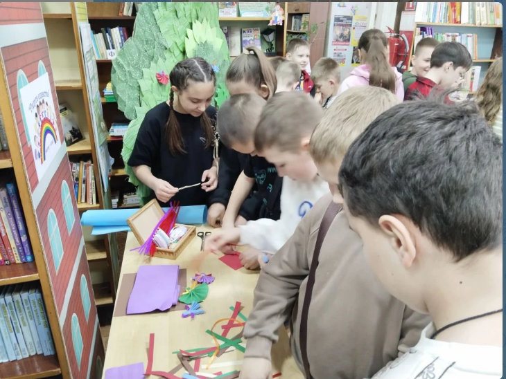 Особенно заинтересовал гостей акции мастер – класс «Радуга единства». Ребята изготавливали из фоамирана, бумаги, ткани и тесьмы фигурки кукол, олицетворяющие народы России, а затем размещали их на «Дереве дружбы».