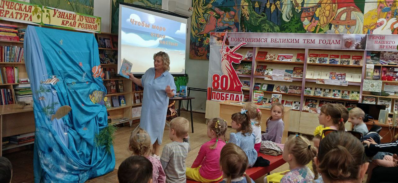 Отгадывая загадки, листая страницы энциклопедий, делясь своими впечатлениями о летнем отдыхе на море, маленькие гости библиотеки прониклись необходимостью каждого человека заботиться о чистоте природы планеты, об экологии морей и океанов.