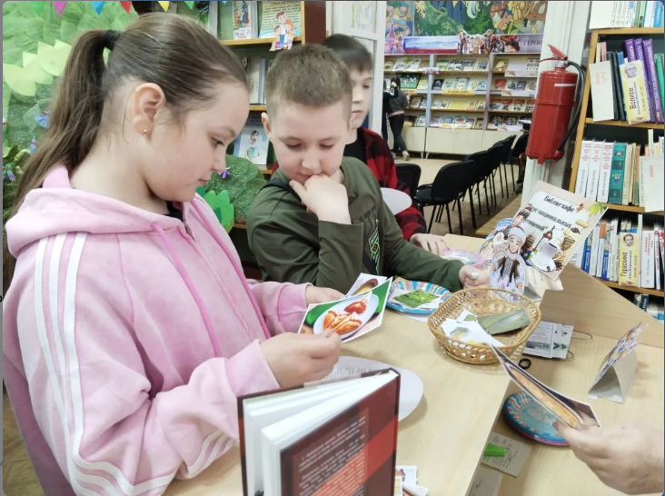 Было многолюдно и в библиокафе «Вкус национальных угощений». Дети выбирали рецепты разных блюд и из предложенных ингредиентов «готовили» эти кушания. Они не только учились кулинарному искусству, но и узнали об истории и значении этих блюд в каждой культуре.