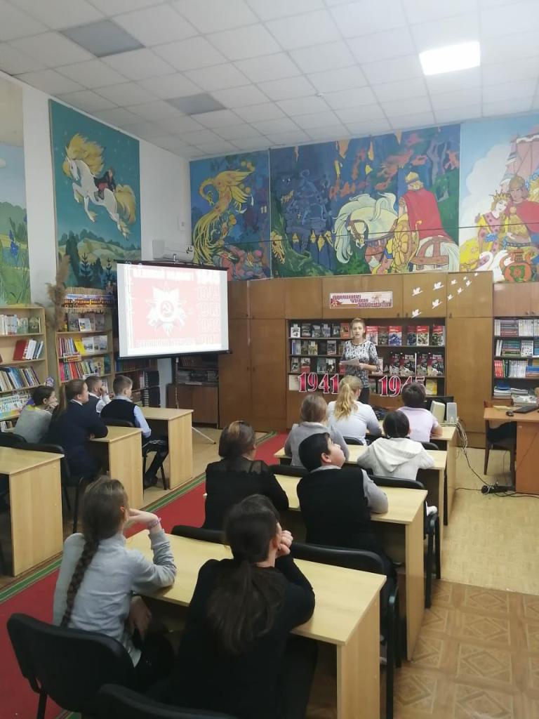 Библиотекарь рассказала школьникам, что прежде чем заняться литературой, автор сам прошел фронтовые будни. Поэтому война - одна из главных тем его произведений.