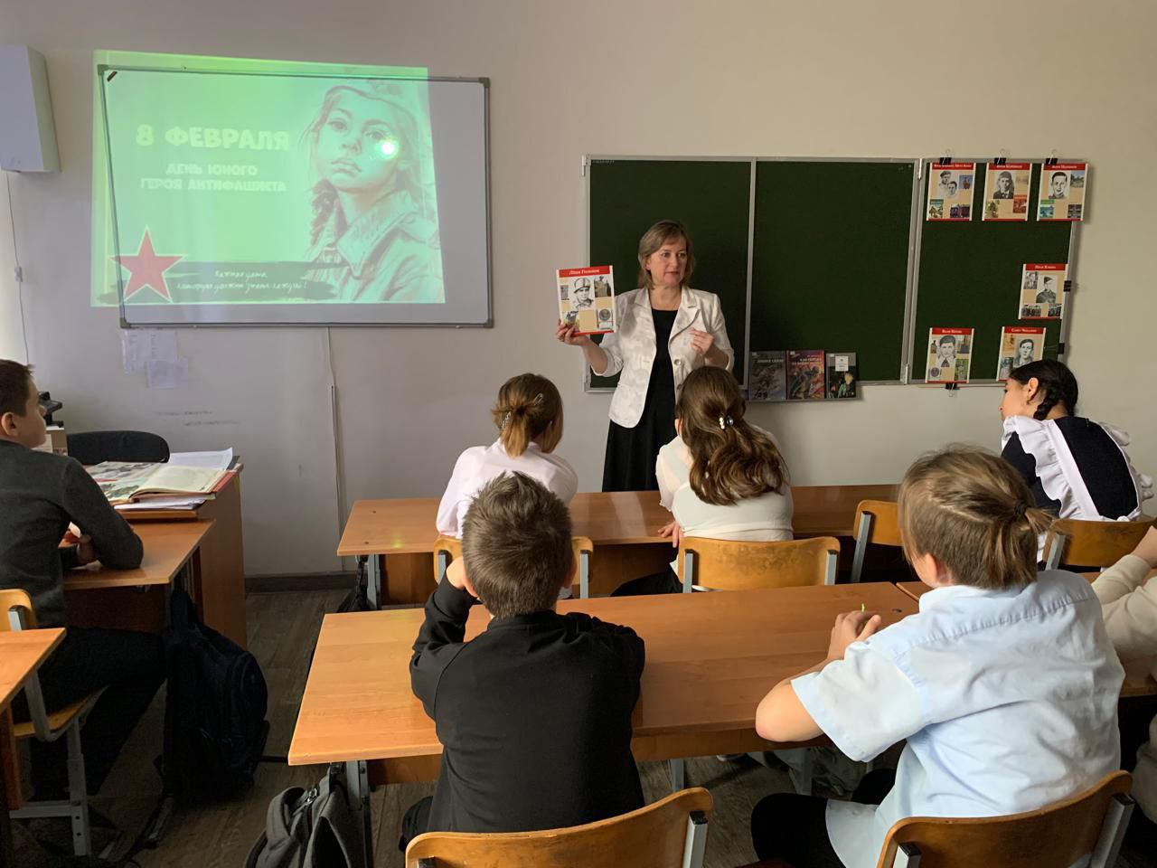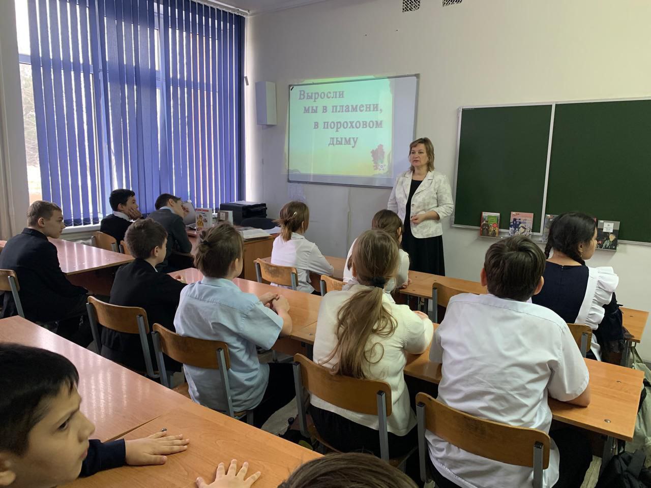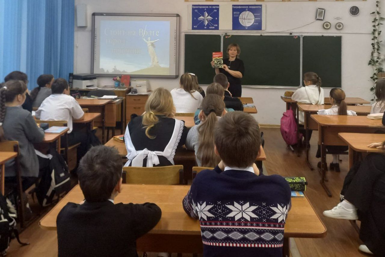 Школьникам рассказали о Великой Отечественной войне, о голодном и холодном времени, о том, что дети во время войны столкнулись лицом к лицу с жестокой, беспощадной, злой силой фашизма, которая стала тяжелым испытанием для советских людей. Ребята узнали о юных пионерах-героях, которые в годы войны стояли рядом с отцами и своими старшими братьями в шеренге бойцов, о том неоценимом вкладе, который они внесли, приближая Победу. Многим из них посмертно было присвоено звание Героя Советского Союза.