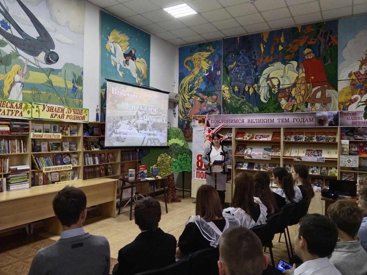 Для учащихся МБОУ СОШ № 10 Новопокровская детская библиотека подготовила обзор произведений писателей-фронтовиков, которые создавались непосредственно в годы войны: «Русский характер» Алексея Толстого, «Они сражались за Родину» М. Шолохова, поэма «Василий Теркин» А.Твардовского, «Повесть о настоящем человеке» Б.Полевого, «Молодая гвардия» А. Фадеева, стихи Константина Симонова. Все они отражали героизм советских людей в борьбе с фашизмом, рассказывали о реальных героях, поднимали боевой дух армии, вели в атаку.