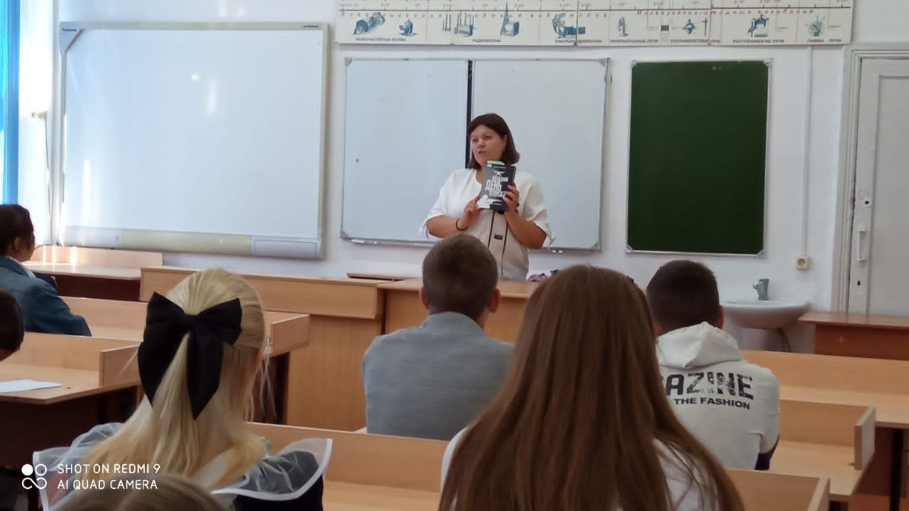 Для учащихся 9-х классов МБОУ СОШ №10 Новопокровская детская библиотека организовала презентацию книги В. Л. Сбитнева ,, Последний день отпуска.