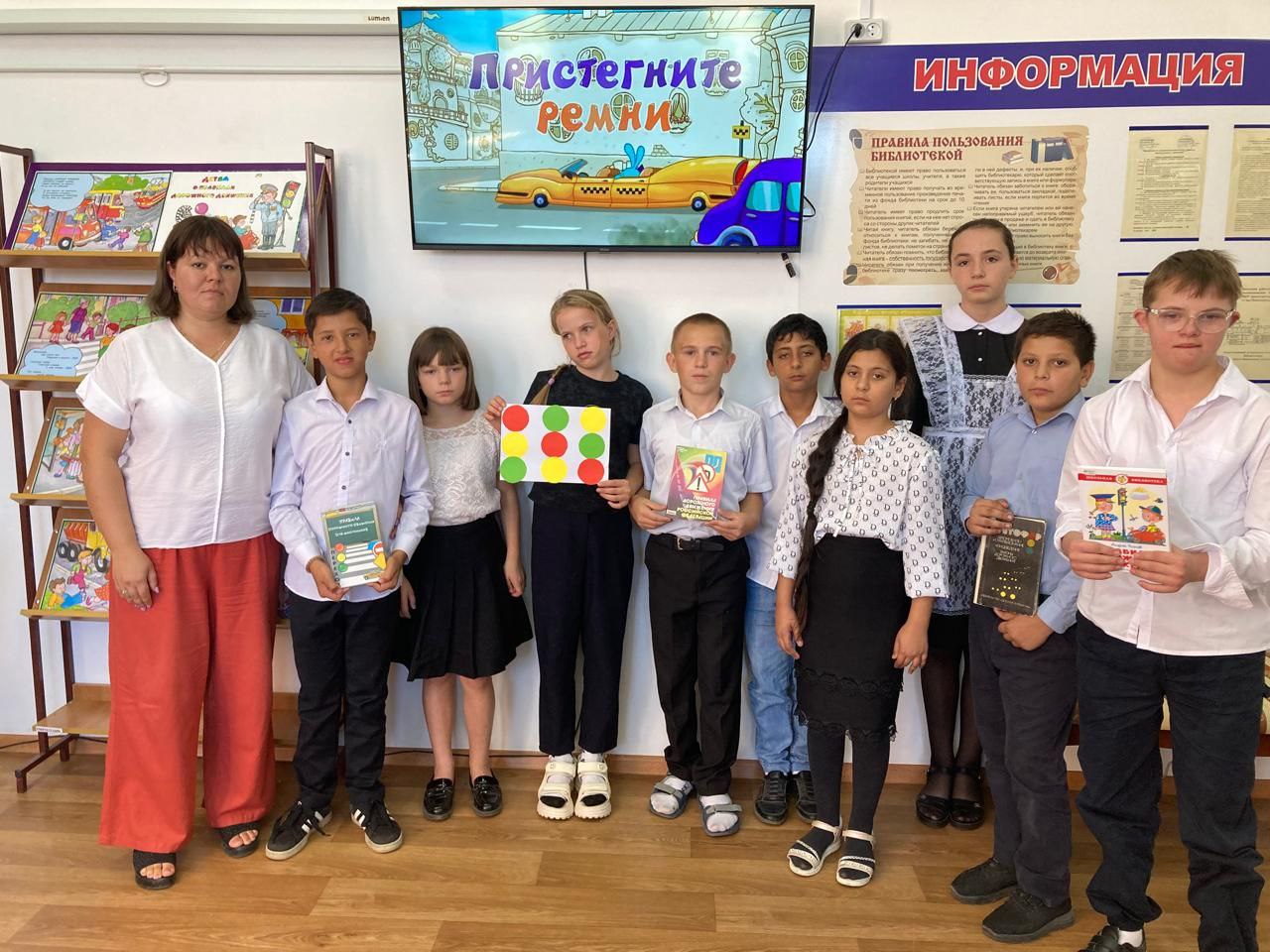 Библиотекарь познакомила ребят с книгами из фонда библиотеки: А.Усачёв «Правила дорожного движения», В. Дмитрук «Правила дорожного движения для школьников» и др. Активно дети отвечали на вопросы викторины, участвовали в конкурсах и играх - «Разрешается - запрещается», «Знаки ПДД».