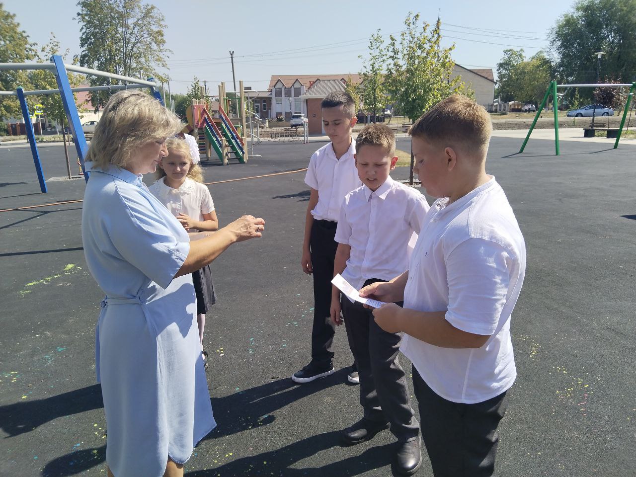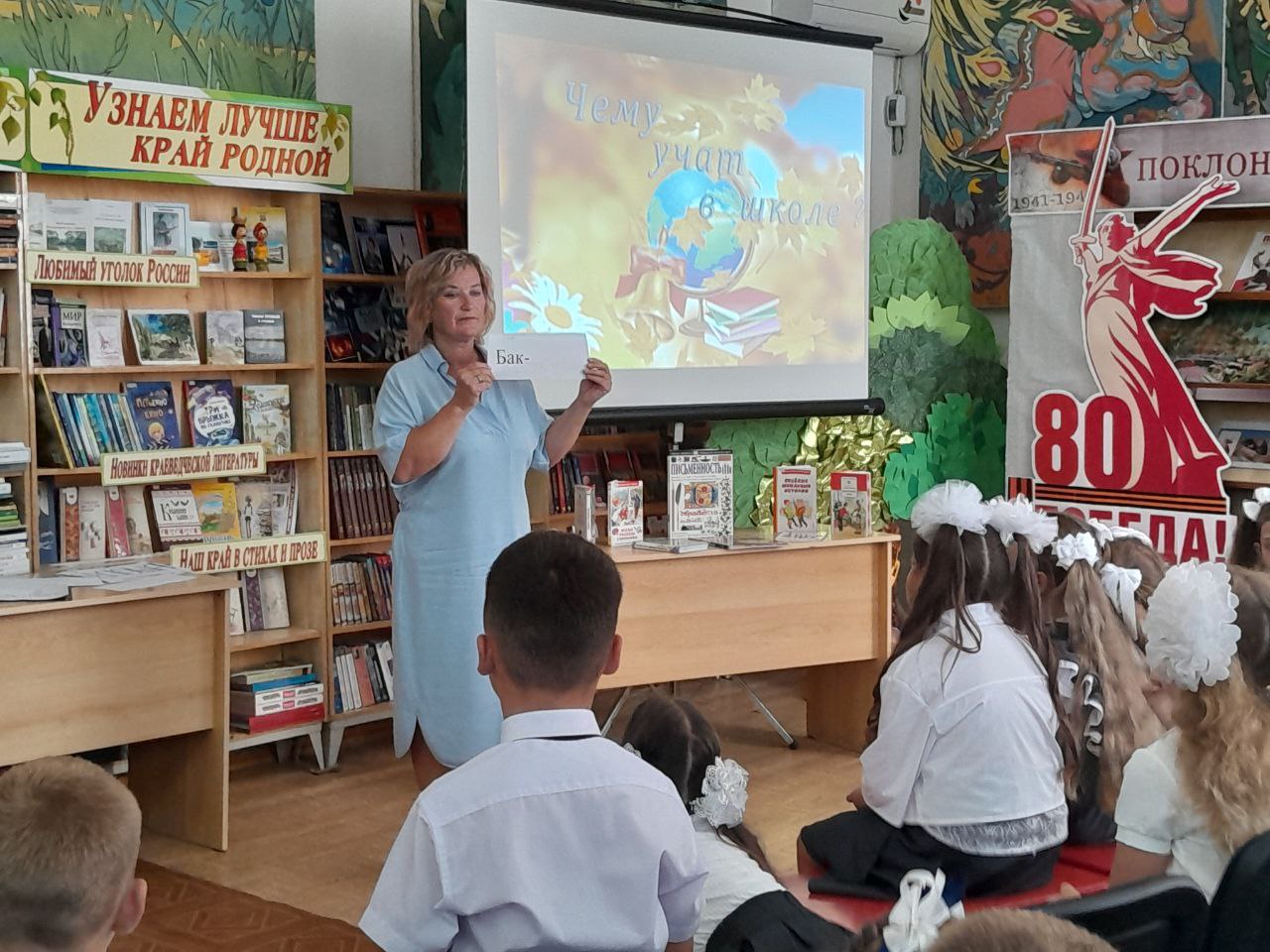 Новопокровская детская библиотека подготовила для учащихся третьих классов МБОУ СОШ № 10 игровую программу, посвященную Дню знаний.Участники мероприятия совершили увлекательное путешествие в мир знаний - дети вспомнили названия школьных предметов, разгадали литературные загадки и исправили ошибки в сочинениях двоечников, вспомнили пословицы и поговорки про ученье и знания. Школьники с удовольствием отвечали на вопросы викторины «Читали! Знаем!» по сказкам русских писателей и поучаствовали в весёлой математической игре «Считалочка».