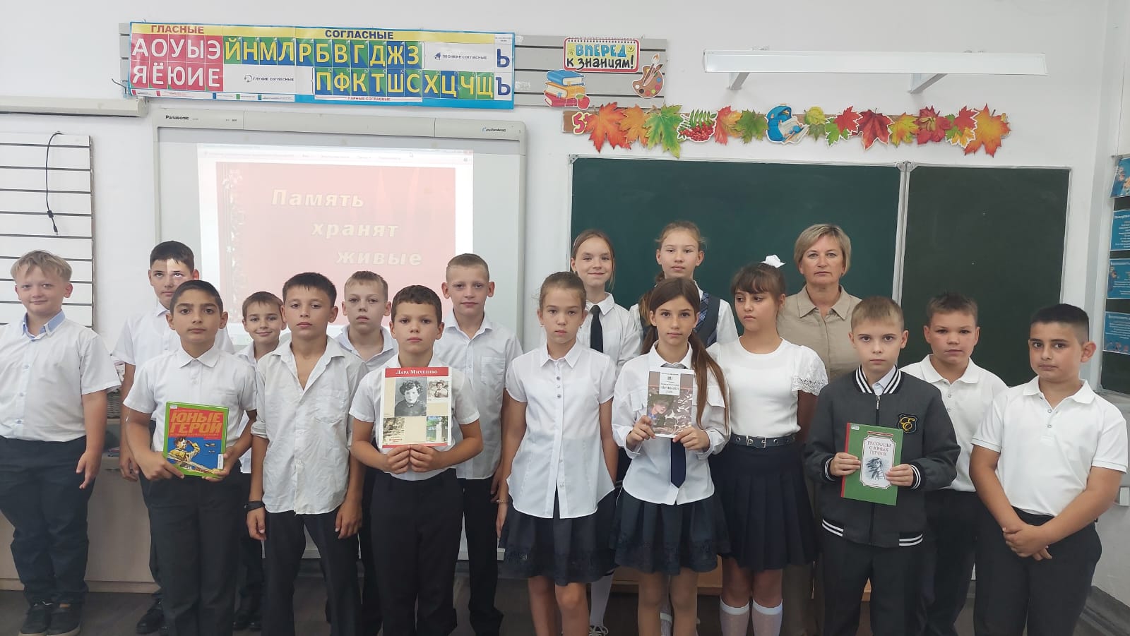 В этот день сотрудниками Новопокровской детской библиотеки для учащихся МБОУ СОШ № 1 был проведен информационный час «Дети против террора», в рамках которого школьники узнали о страшных событиях 2004 года, когда самые беззащитные и слабые, дети, оказались в заложниках, о том, как увековечена память о погибших, об отваге и мужестве спецназа, учителей и родителей.