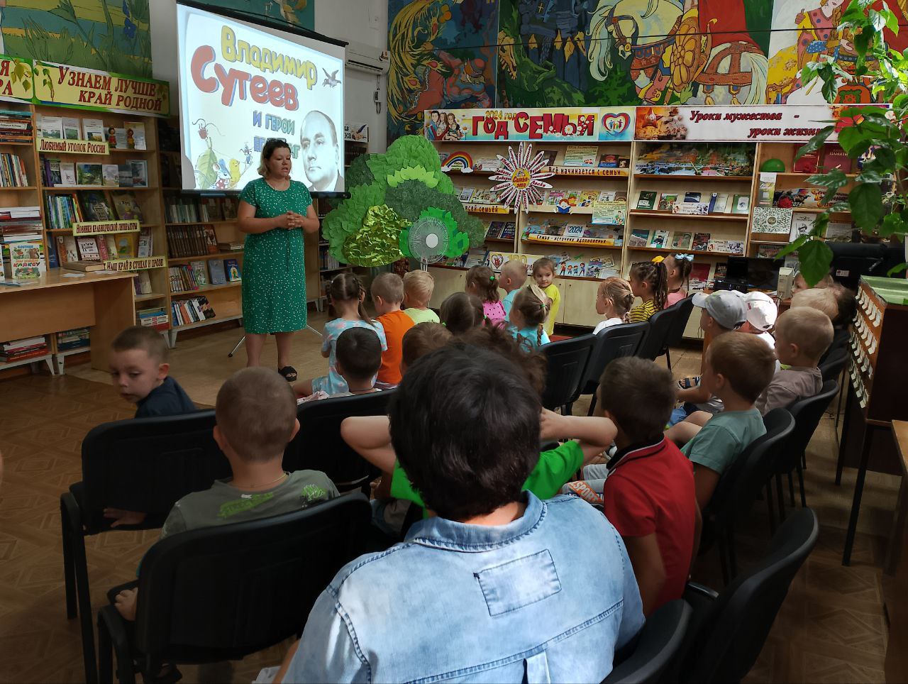 Новопокровская детская библиотека для воспитанников МБДОУ №2 провела познавательный час по произведениям Владимира Сутеева .
