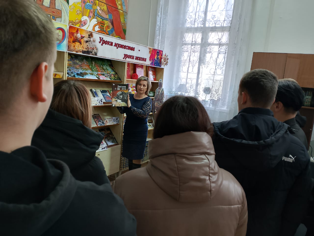« Уроки мужества - уроки жизни» - беседа у выставки для учащихся МБОУ СОШ № 7.