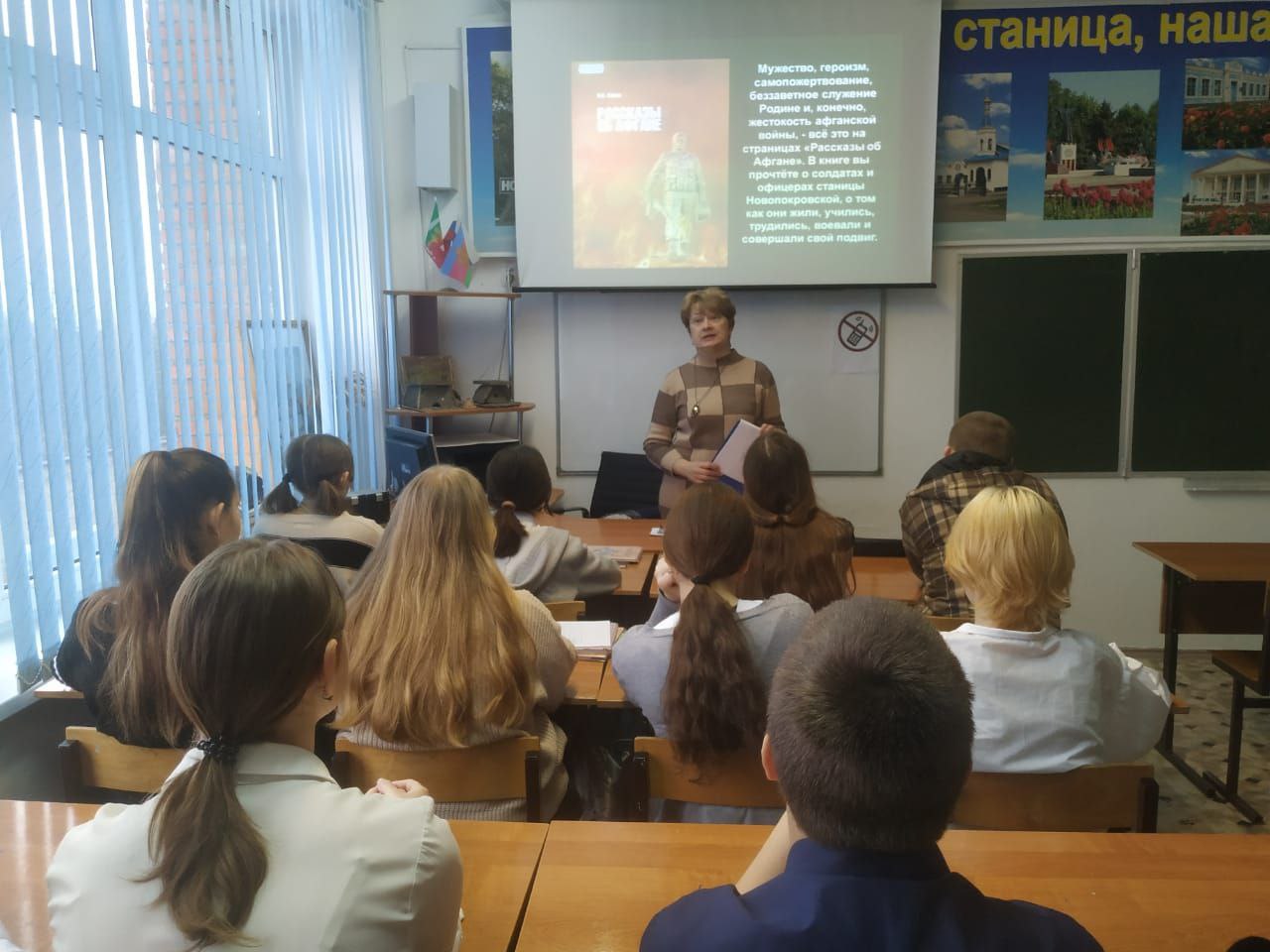 Новопокровская детская библиотека для учащихся старших классов МБОУ СОШ №1 подготовила мероприятие, посвященные Дню памяти о россиянах, исполнявших служебный долг за пределами Отечества.