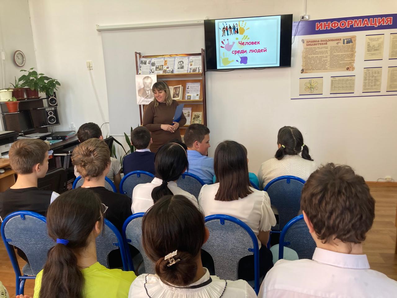 Чтобы помочь молодому поколению ответить на эти столь сложные вопросы Новопокровская детская библиотека для учащихся ГКОУКК школы - интернат организовала мероприятие «Человек среди людей». В ходе диалога ребята выяснили, что для того, чтобы человеку было комфортно среди людей, ему нужно уметь общаться, дружить, уметь вести себя в обществе. С большим интересом ученики участвовали в викторине об основных нравственных качествах личности; выполнили тест «Загляни в себя» - рассказали друг другу, каким человеком каждый хочет стать, вступив во взрослую жизнь.