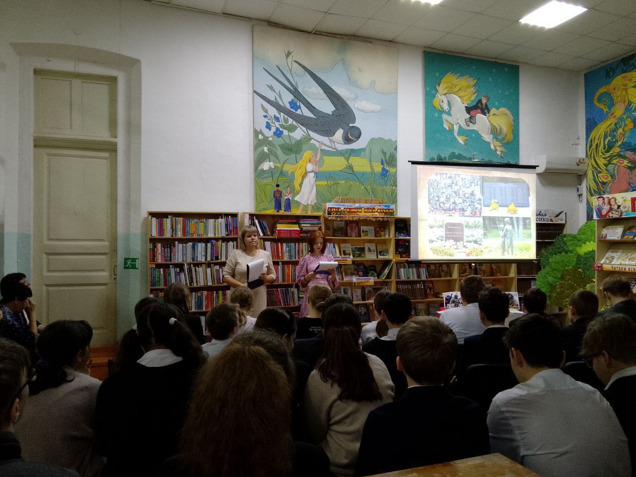 Новопокровская детская библиотека провела урок мужества «Вперед российские сыны!» для учащихся седьмых и восьмых классов МБОУ СОШ №1.