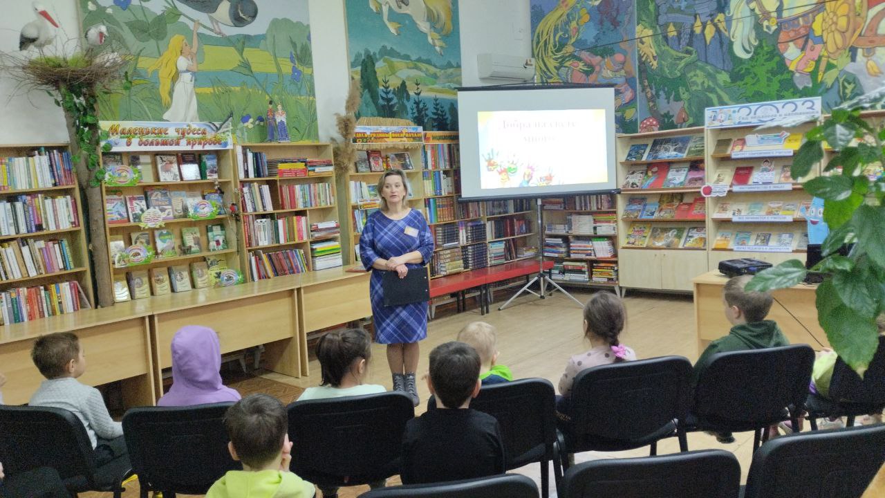 В рамках Весенней Недели Добра Новопокровская детская библиотека для воспитанников МБДОУ №42 подготовила час общения, в ходе которого дети узнали о таких понятиях как чуткость, сострадание, доброжелательность, культура общения. Ребятам рассказали о том, что в русском языке есть такие уникальные «волшебные» слова, которые дарят нам добро, тепло, свет, настроение, и слова эти стоит употреблять почаще, для того, чтобы быть взаимовежливыми. Ярким моментом встречи стало появление Злой Колдуньи, которая попыталась внести раздор между детьми. Но малыши дружно дали ей отпор и убедили в том, что добро всегда побеждает зло.