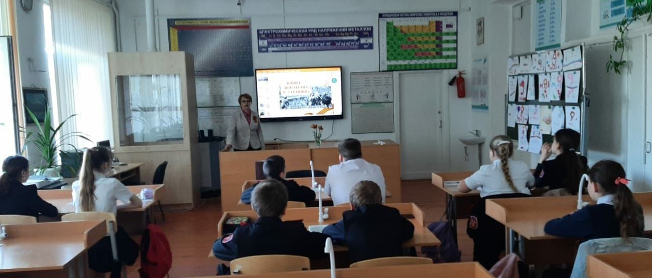 В рамках празднования 78-й годовщины Великой Победы Новопокровская детская библиотека провела для учащихся 5 «В» класса МБОУ СОШ №10 час памяти «И гордости в сердце не скрою». У каждого народа есть свои заветные имена, которые никогда не забываются. Чем дальше - тем ярче и светлее становится в памяти потомков светлый образ народных героев. Они, как звёзды на небосклоне, освещают исторический путь нашего народа, являя собой образец жертвенного служения своему Отечеству.