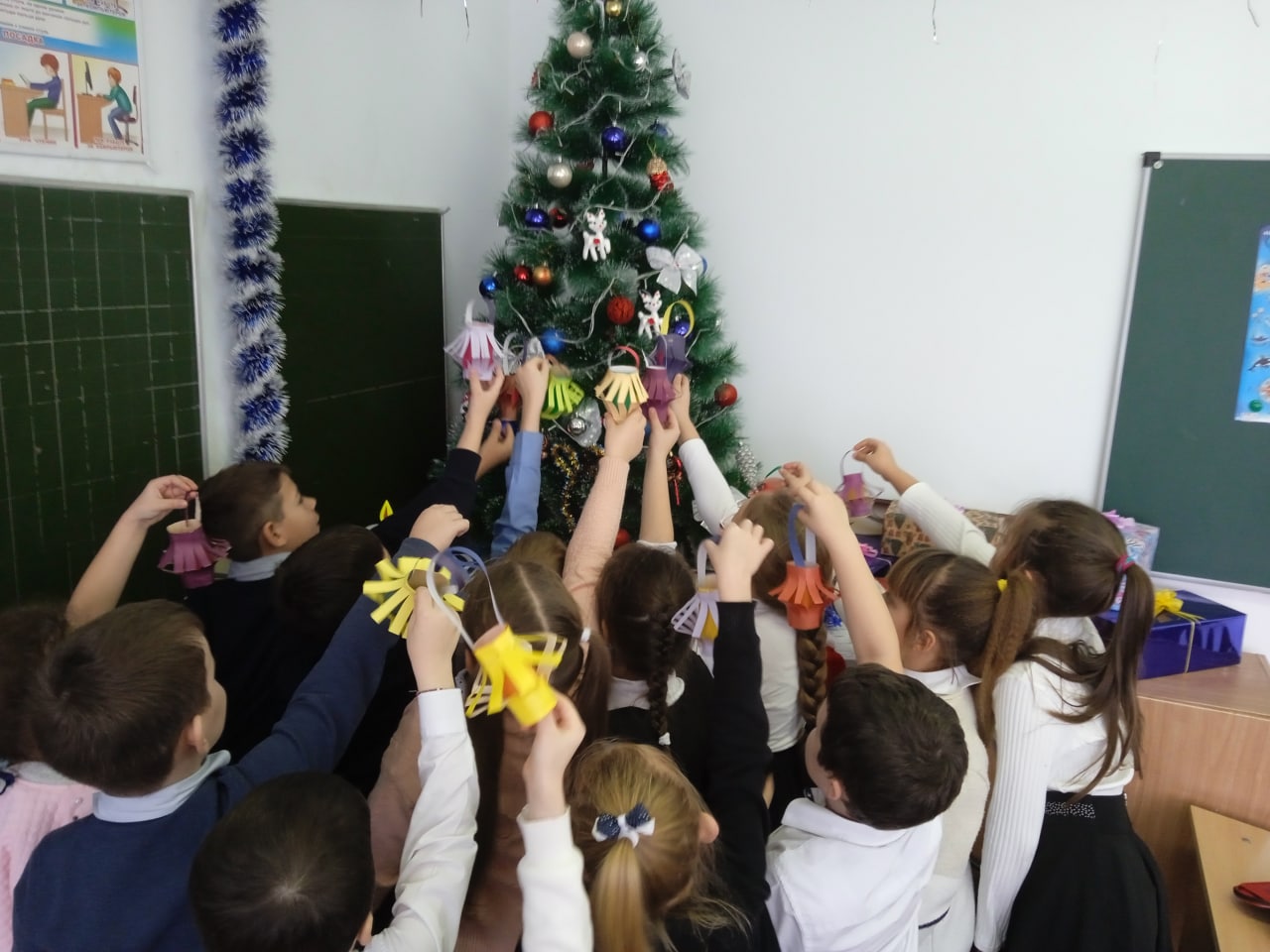 Сотрудники Новопокровской детской библиотеки подготовили для первоклассников МАОУ СОШ № 1 мастер-класс по изготовлению елочных украшений. Ребята старались, пошагово выполняя задание, при этом помогая друг другу. Изготовленные новогодние украшения заняли свое место на елке, установленной в классе.