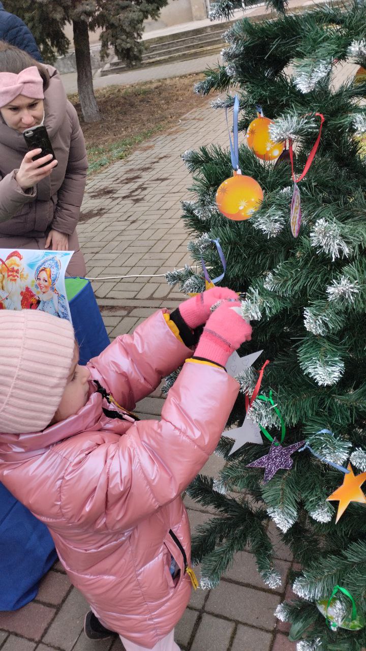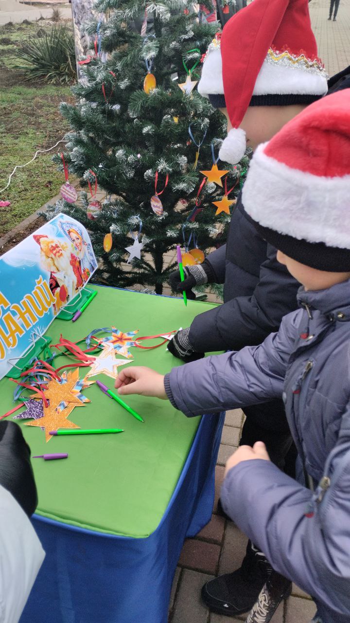 Новопокровская детская библиотека приняла участие в параде- шествии Дедов Морозов и Снегурочек. На площади оформлена "Ёлка пожеланий", где гости праздника могли взять шар с поздравлениями и в ответ на звёздочке написать своё пожелание жителям района.