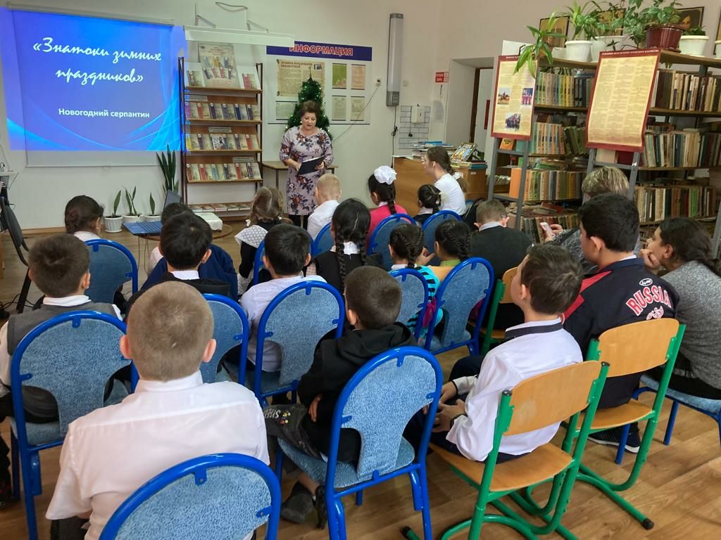 Новопокровская детская библиотека для участников клуба "Дорогою добра" подготовила новогоднюю игровую программу «Знатоки зимних праздников». Библиотекарь вместе с детьми отправились в путешествие по зимним праздникам, поговорили об обычаях русского народа, дети рассказали о традициях, принятых в их семьях. Ребята узнали, что такое «Колядки», как правильно встречать «Новый год», «Рождество», «Масленицу». В заключение всем участникам встречи вручили памятки с колядками, щедровками, чтобы дети могли их использовать в предстоящих праздниках.