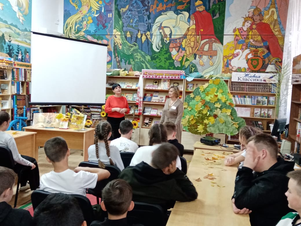 28 октября в Новопокровской детской библиотеке для учащихся 6-х классов МАОУ СОШ №1 проведена литературная гостиная «Прекрасны осени мгновенья».