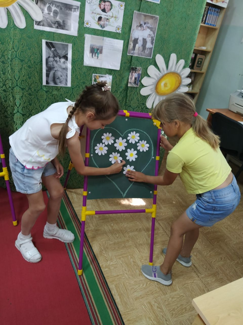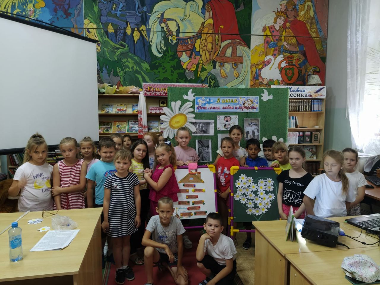 Юные читатели узнали, почему именно 8 июля отмечается Всероссийский день семьи, любви и верности и о символе этого праздника – полевой ромашке. Дети подготовили небольшие рассказы о своих семьях, строили «Дом мечты», закрепляя кирпичики на планшете, писали пожелания на лепестках ромашки и сложили из них любящее сердце. В ходе мероприятия участники исполнили песню, посвящённую этому празднику, участвовали в викторинах.