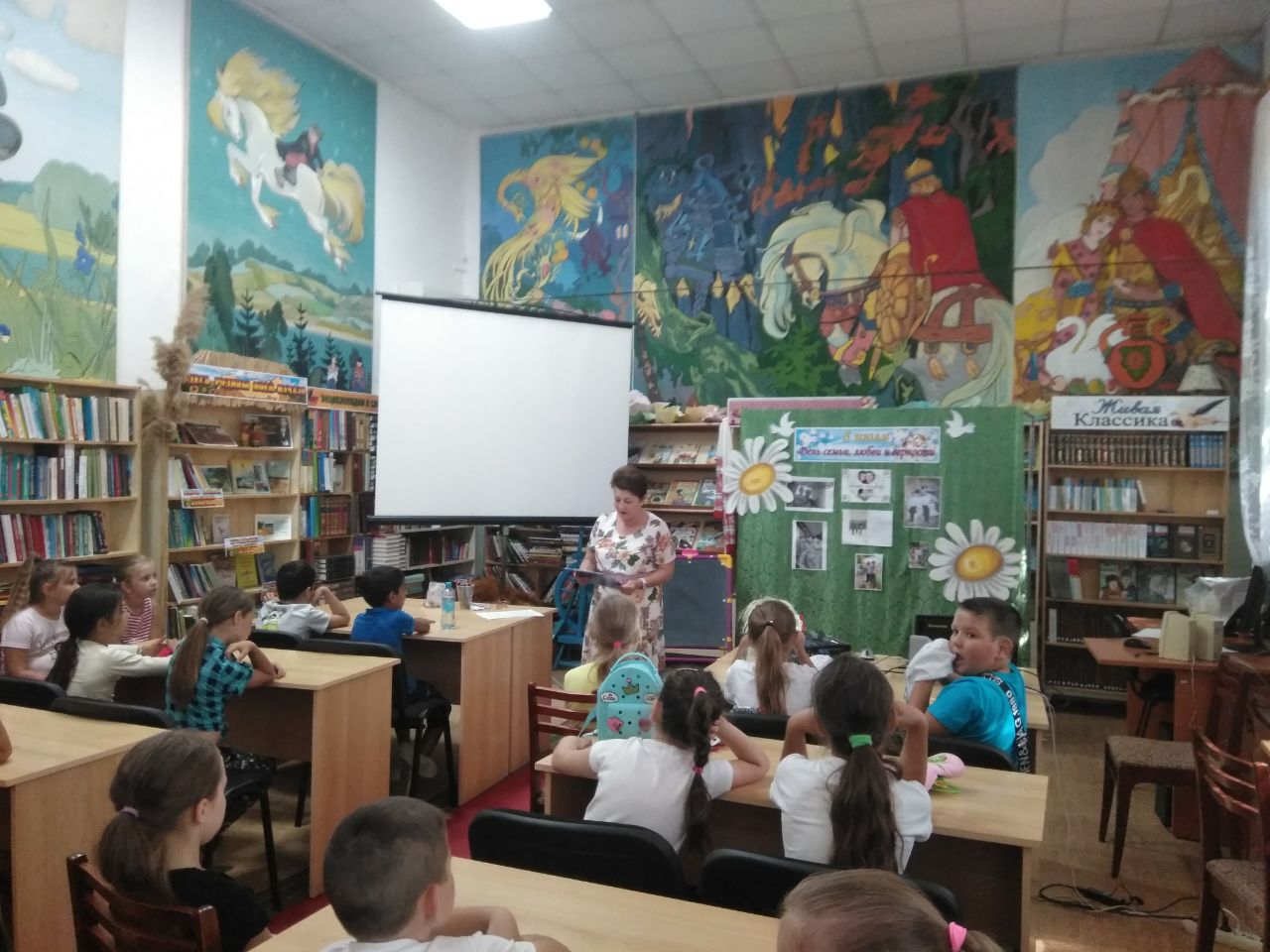 14 июля для учащихся 1 класса СОШ №10 в Новопокровской детской библиотеке был проведен урок природы "Книга нам открыла дверь в мир растений и зверей".
