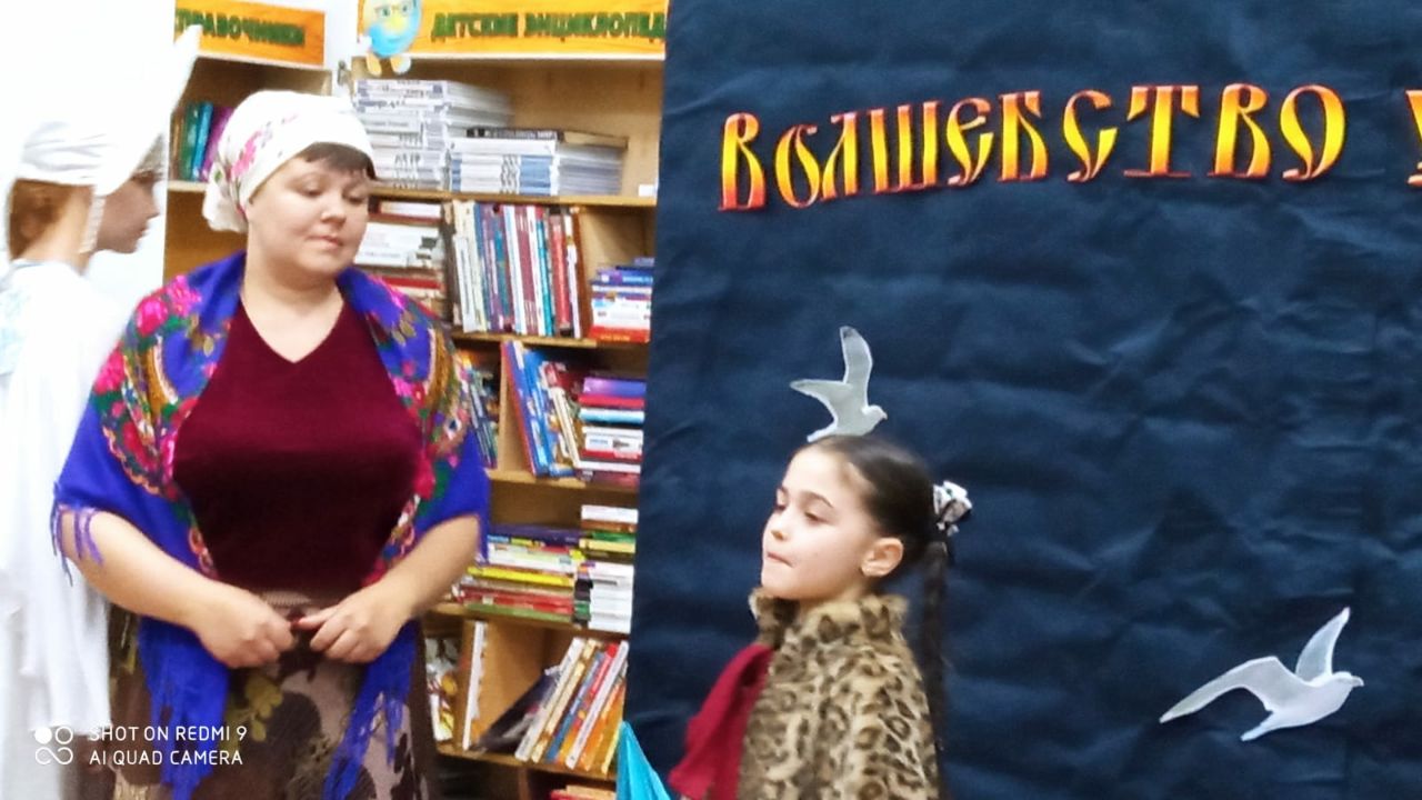 Театрализованное представление «Сказка, рассказанная на ночь» понравилось всем без исключения. Сказочные герои Кот Ученый, Царевна Лебедь, Старуха из сказки А.С. Пушкина «О рыбаке и рыбке» и Герда предложили гостям развлекательно-познавательные викторины, загадки, театральные игры- миниатюры.