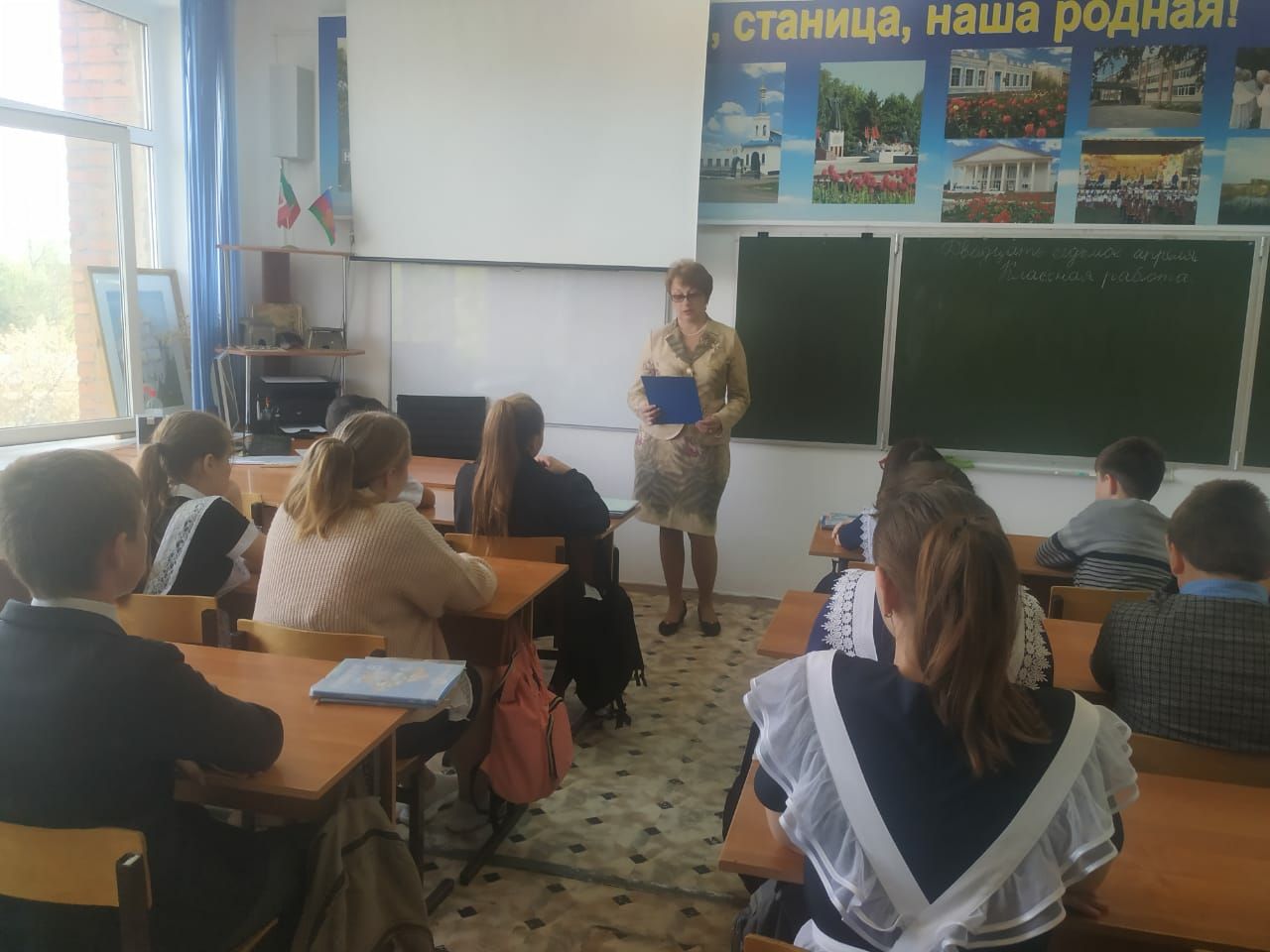 В преддверии праздника работники Новопокровской детской библиотеки провели урок мужества, для учащихся 4 класса МАОУ СОШ № 1.